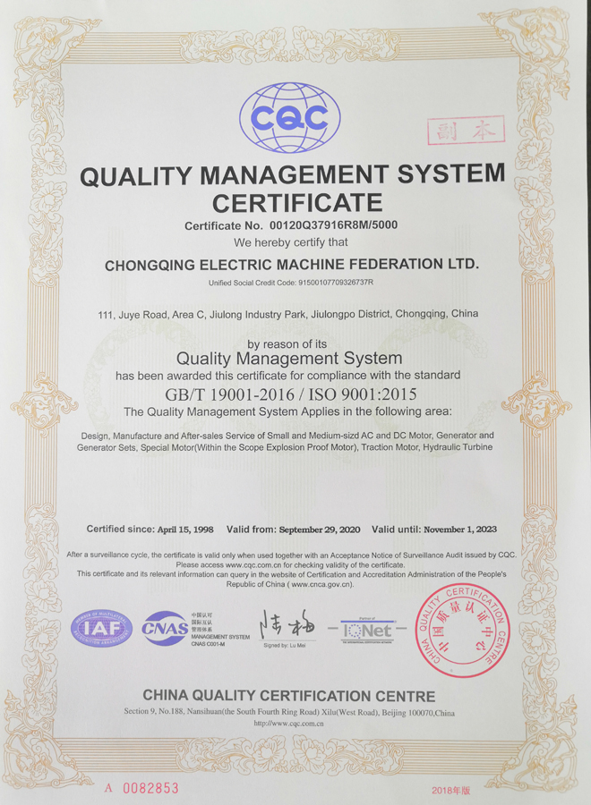公司傳承了原重慶電機廠先進的電機制造技術和管理經驗,建立了按現代企業制度管理方式的法人治理機制,是國家重點企業及研發、生產和銷售各型交流異步電動機、交流同步電動機、直流電動機、汽車電機、軌道牽引電機、水輪發電機及發電機組和其它特殊電機的專業制造廠家。